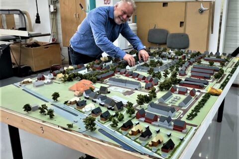 “Mijn maquettebouwbedrijf liep jaren achtereen meer dan uitstekend. We groeiden als kool en moesten met onze kleine 20 medewerkers na enige tijd verhuizen naar een groter pand in Amersfoort. De opdrachten vlogen ons bij wijze van spreken jarenlang om de oren. Onze maquettes waren op allerlei continenten te zien. Opdrachtgevers waar we voor werkten waren onder meer Bouwfonds (BPD), Ballast Nedam, Volker Wessels Stevin, Rijkswaterstaat, diverse gemeenten en een groot aantal architectenbureaus uit heel Nederland. Voor een aantal van die klanten werk ik nog steeds. Toen er in 2008 een economische crisis uitbrak kregen we het best moeilijk maar hebben we het goed doorstaan met een wat kleiner team. Sinds 2017 heb ik een 1-mans zaak en werk ik niet meer zo achterlijk veel als voorheen. Dat bevalt prima. Ons wereldje is tamelijk klein. Met name architecten uit binnen- en buitenland weten mij nog steeds te vinden, vooral bij wat complexere opdrachten.”